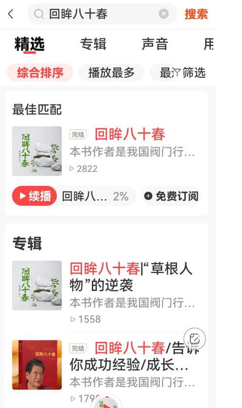 近日,公司終身名譽董事長項美根個人著作《回眸八十春》在國內專業(yè)音頻分享平臺“喜馬拉雅”出版了。喜馬拉雅是一個提供各類有聲作品在線收聽和熱門音頻節(jié)目推薦的平臺,打開喜馬拉雅APP,搜索《回眸八十春》,就有三個不同版本的《回眸八十春》有聲書,針對不同讀者編輯出版的這三個有聲書版本的篇幅不一樣,有48集的,有84集的;三個演播人(主播)也不一樣分別是豫笙,一彎暖陽,小國王亞。