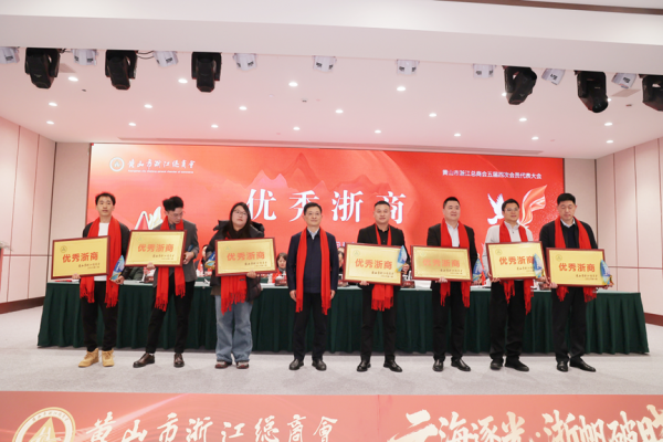 在表彰環(huán)節(jié),黃山市浙江總商會執(zhí)行會長陳一宣讀表彰通報,方建輝、蔡紅霞等5位企業(yè)家榮獲“杰出浙商”稱號,李虹、李曉等20位企業(yè)家榮獲“優(yōu)秀浙商”稱號。我公司作為杰出代表,被授予“優(yōu)秀浙商”稱號,這一榮譽不僅是對企業(yè)過去一年辛勤付出的肯定,更是對未來發(fā)展的激勵。