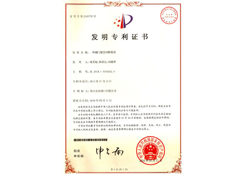 一種閥門電動裝置專利證書